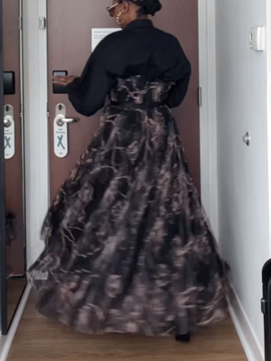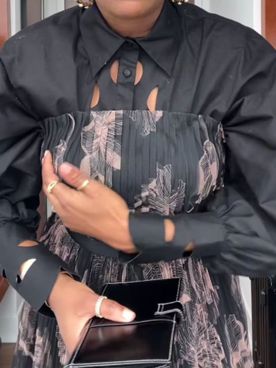 Hollowed Out Printed Patchwork Maxi Dress