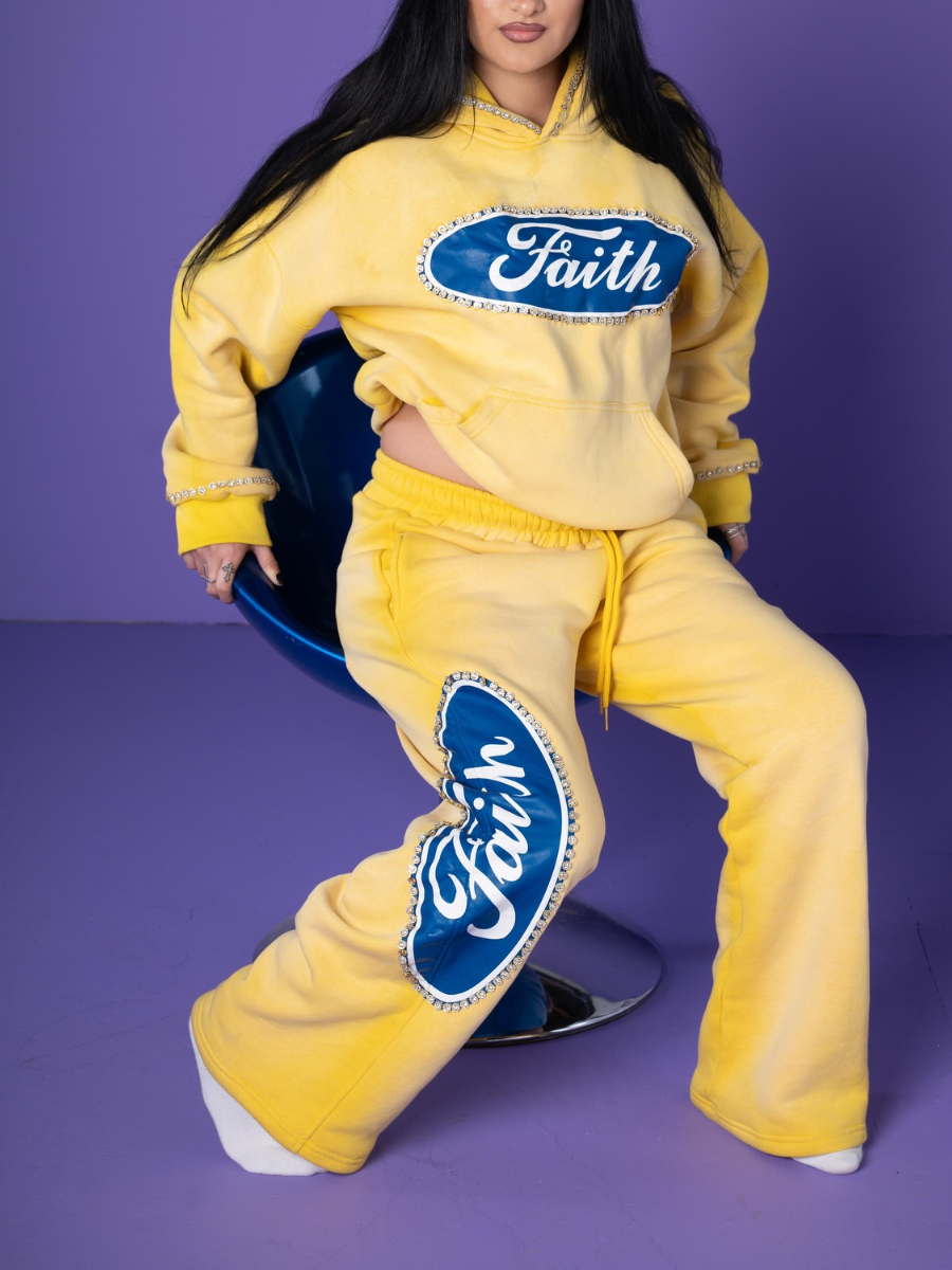 Printed Letters With Diamond Hooded Sport Set