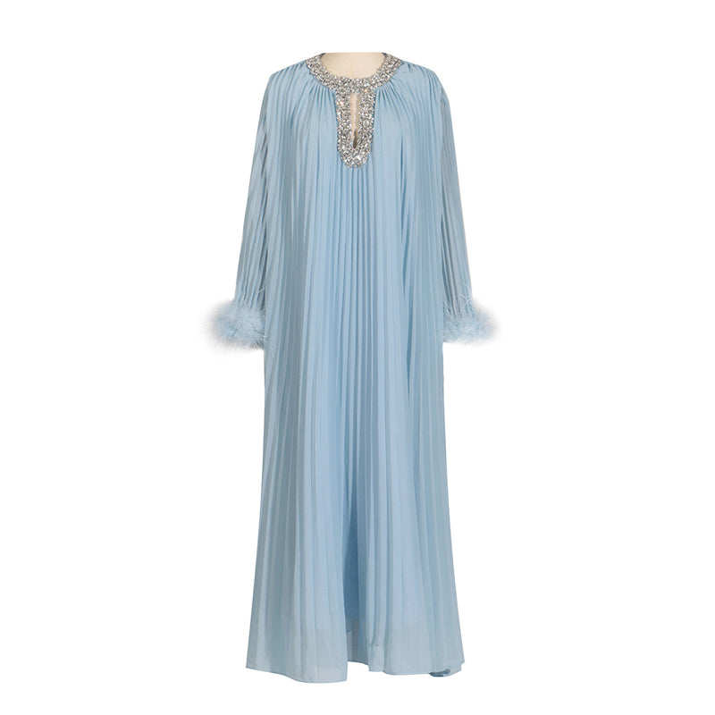 Rhinestone Sparkle Feather-trimmed Party Maxi Dress
