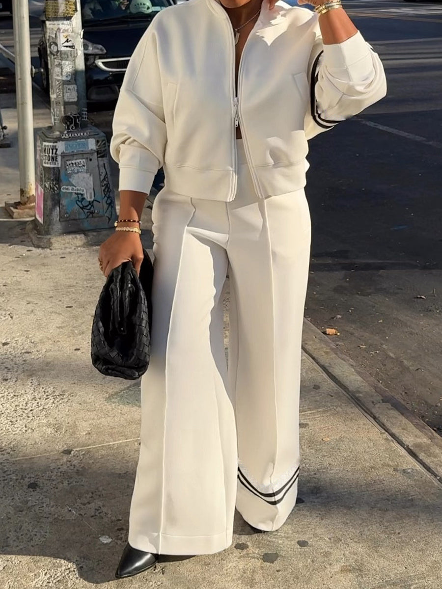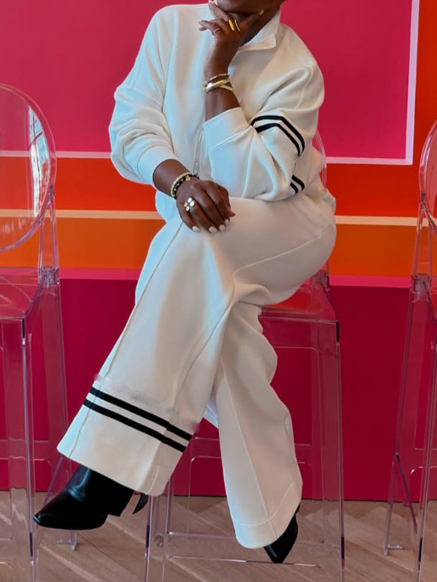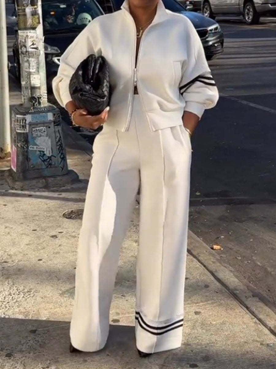 Striped Print Zip Up Two Pieces Set