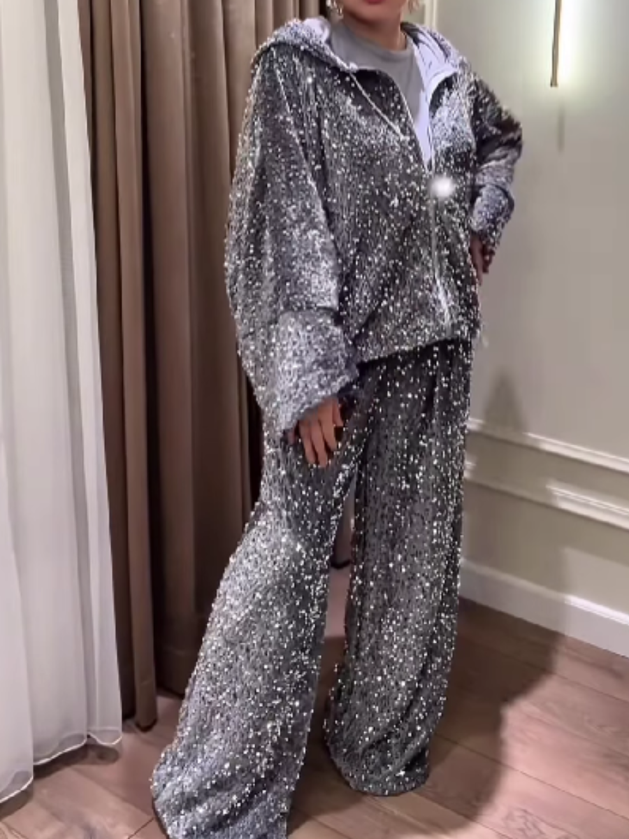 Velvet Sequin Zip Hooded Set